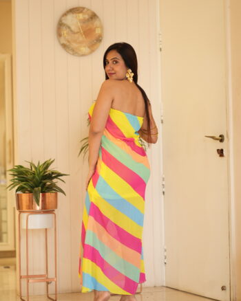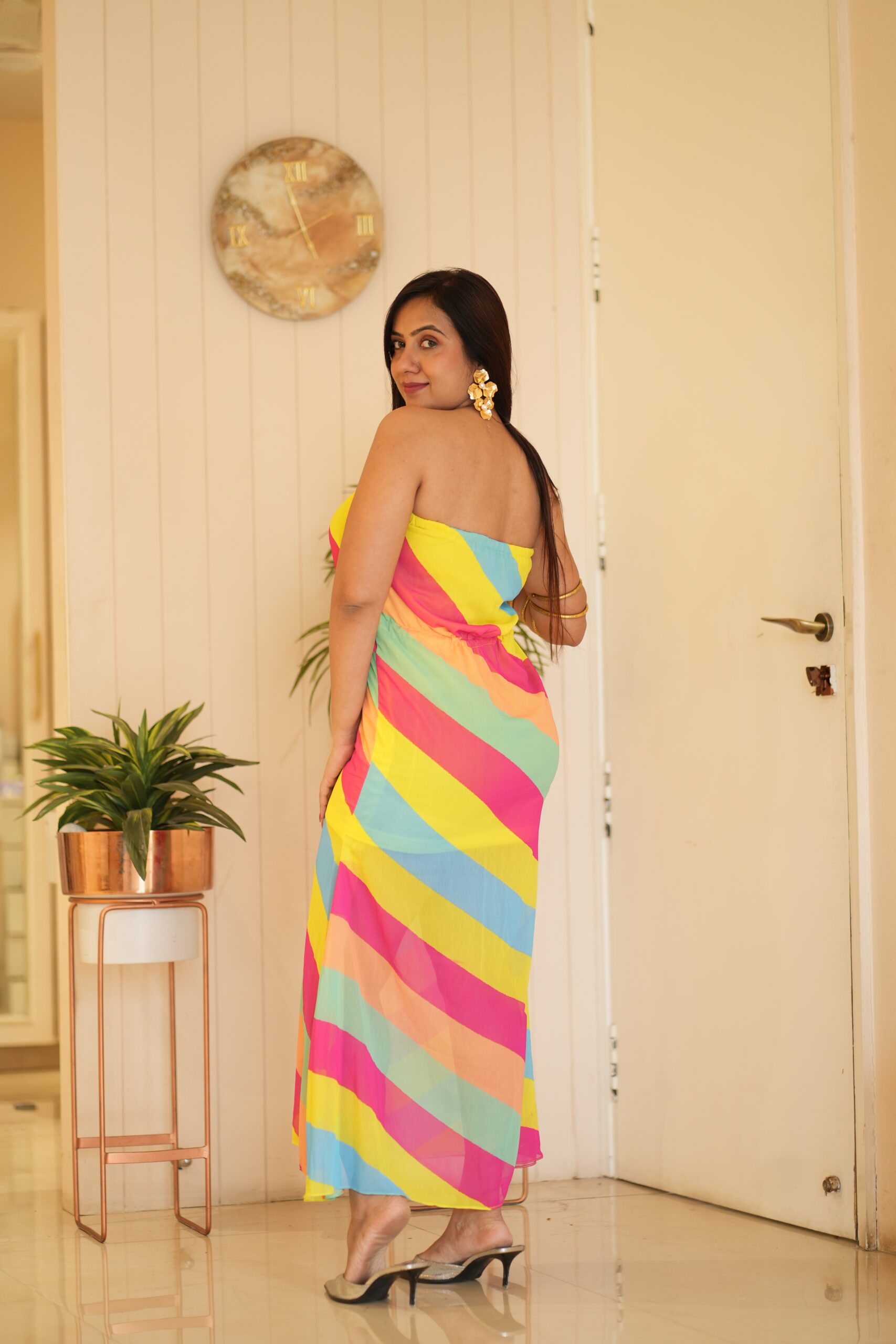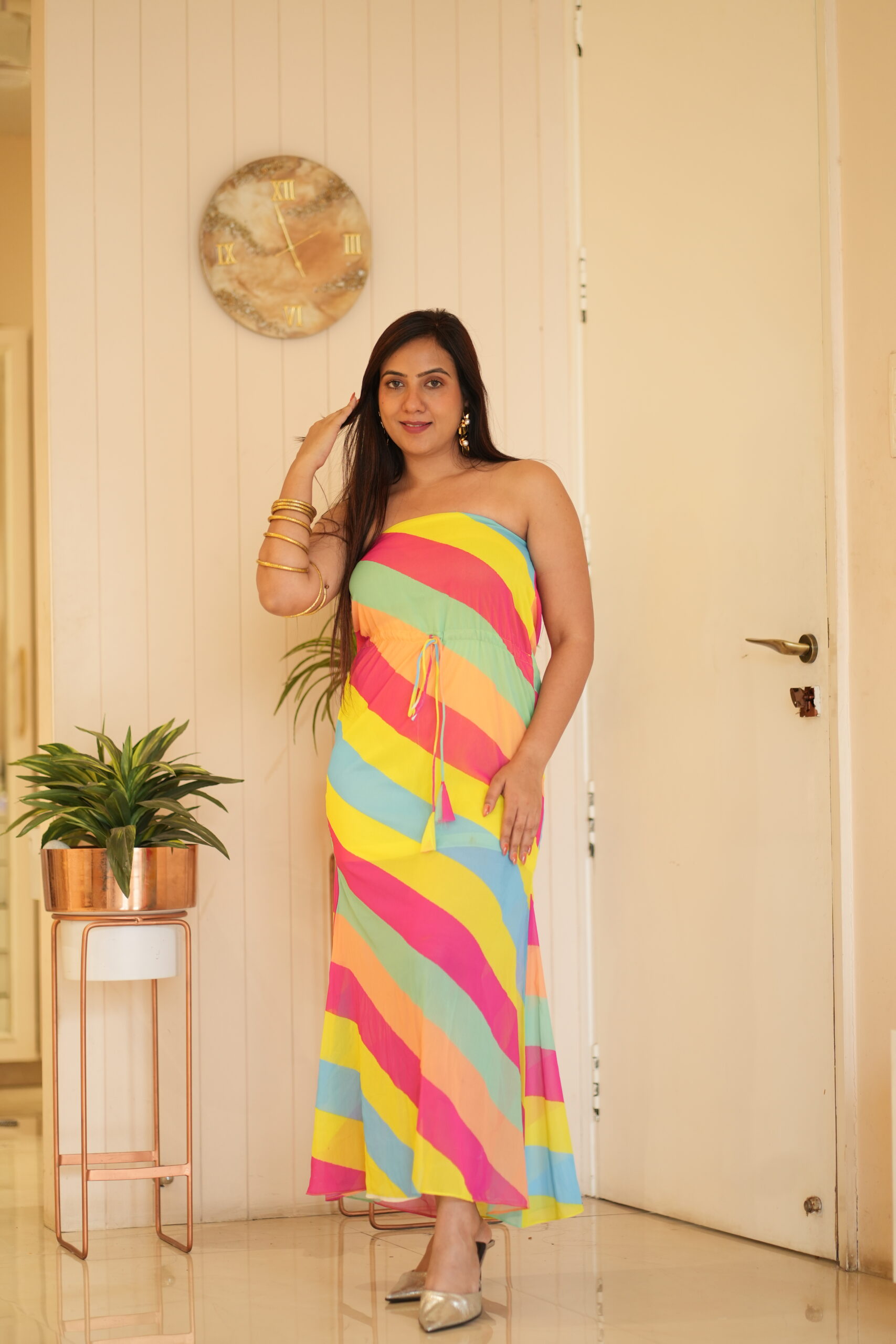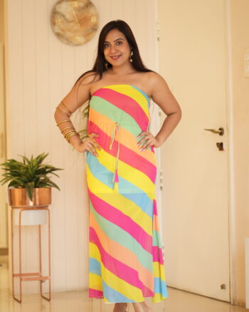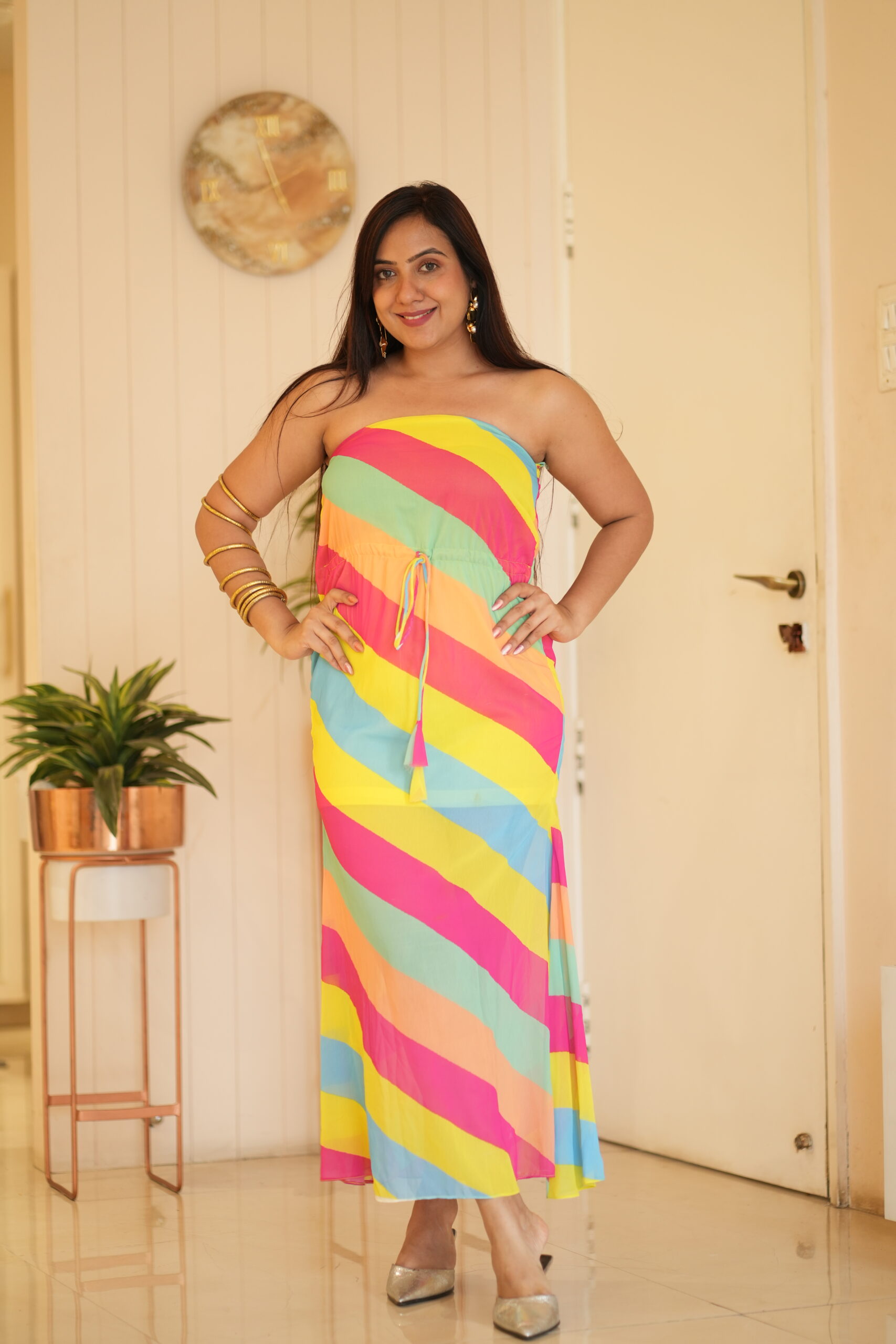 Fun tube dress in pure chiffon with bright stripes. Light, comfy, and perfect for vacations.