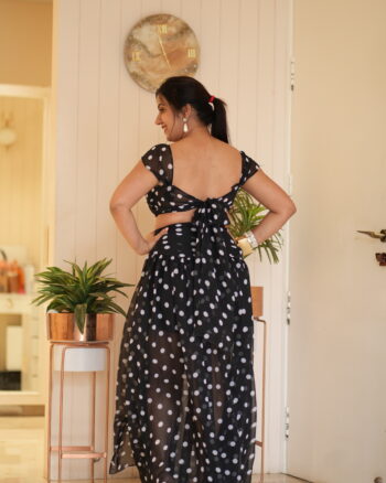 Cute yet victorious vibes in this flowy polka set — perfect for a Europe trip. The elegant slit cut skirt design adds effortless class with every step.