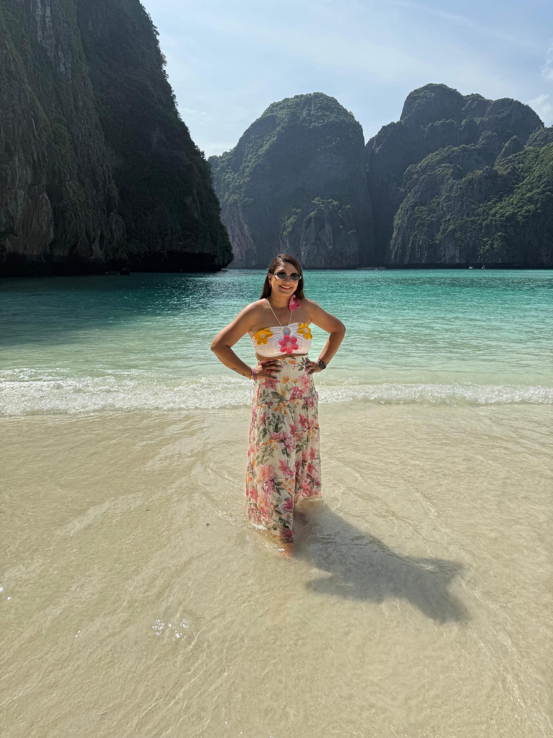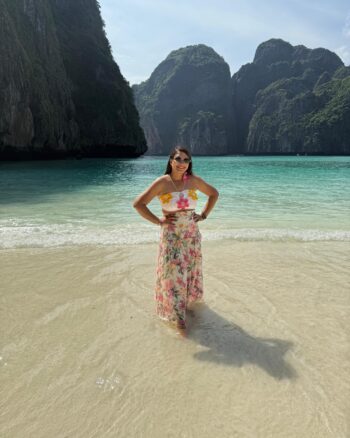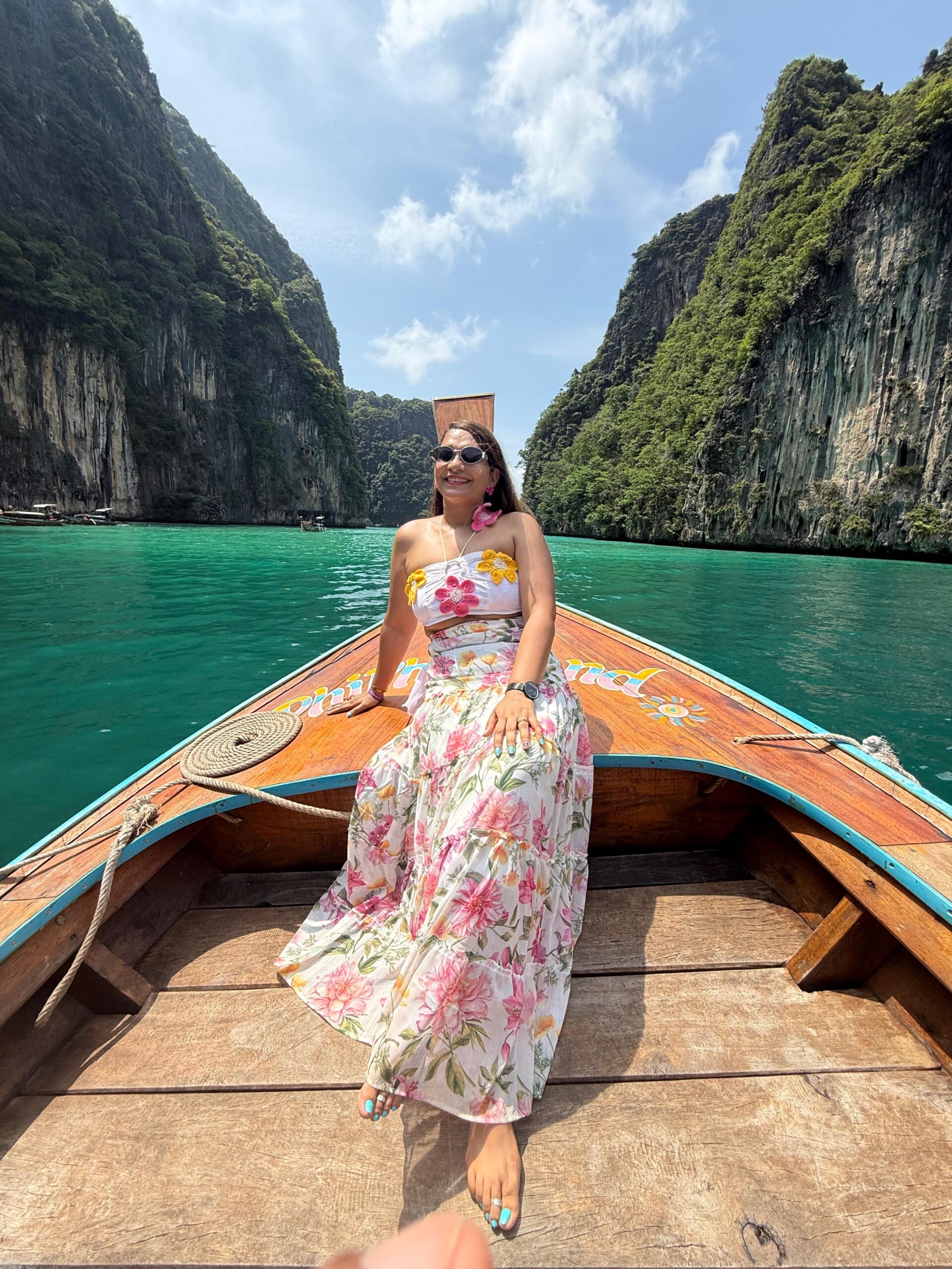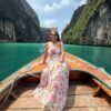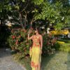 White floral halter dress with colorful flower accents with beautiful crop finished with hand made crochet flowers — perfect for dreamy vacation boat rides and beach shoots,pool party,