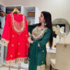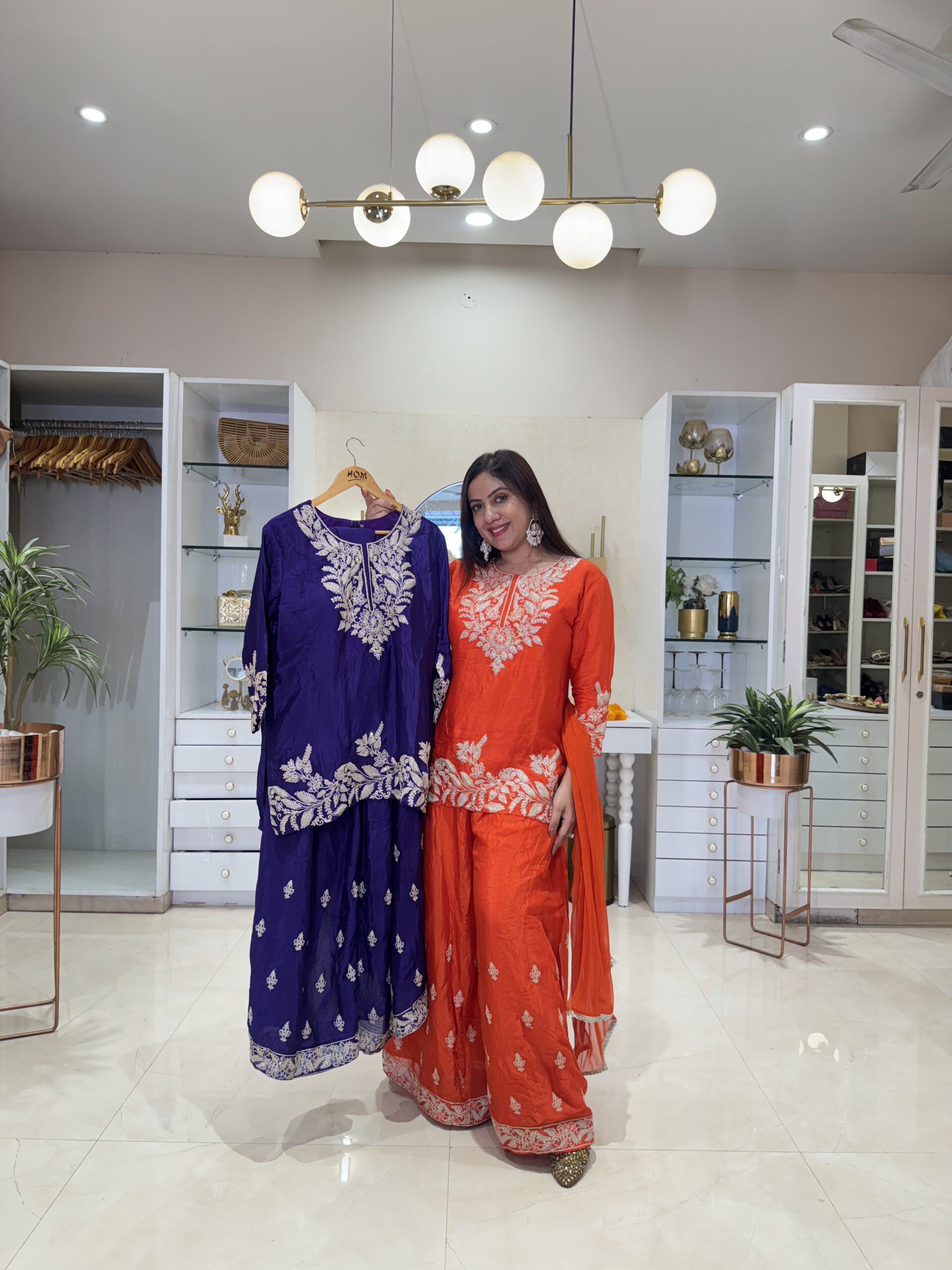 Pure chiffon fabric in a trending wedding-season color, adorned with elegant zari work — a timeless festive choice. ✨